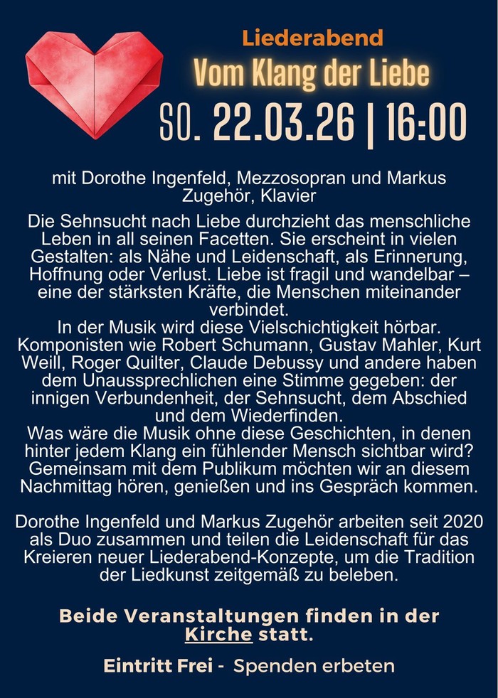 mit Dorothe Ingenfeld, Mezzosopran und Markus Zugehör, Klavier