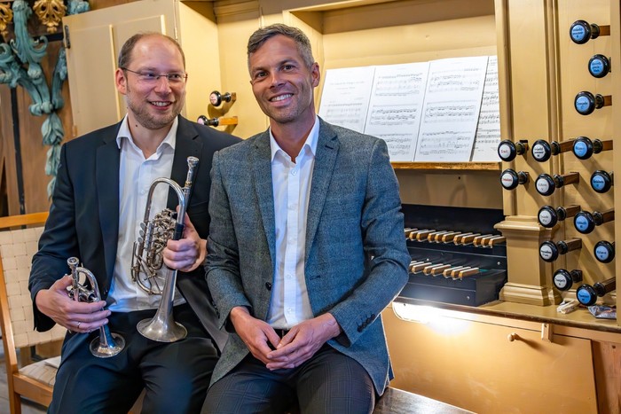 Solisten Hans Jacob (Trompete, Horn) und Marco Lemme (Orgel)
