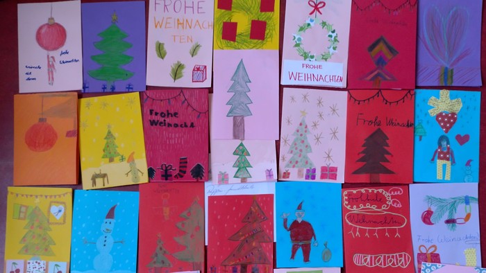 Wieder haben uns im Dezember viele Weihnachtskarten von Kindern aus Tempelhofer und Schöneberger Grundschulen erreicht. Die meisten wurden im Religionsunterricht gestaltet. Die Religionslehrenden haben dabei mit den Kindern auch über Demenz und Einsamkeit gesprochen. Berührend, wie gut sich die Kinder in die Bedürfnisse von alten Menschen einfühlen können und wie viele gute Gedanken und Wünsche, wie viel Freude mit diesen Karten überbracht wird. Immer wieder ist es auch eine Freude für uns, die vielen Karten an die Menschen in den Pflegeeinrichtungen weiter geben zu können und zu sehen, was sie bewirken. Wir möchten uns im Namen aller Empfängerinnen und Empfängern bei allen herzlich bedanken, die daran mitgewirkt haben, dass diese Karten gestaltet wurden - ganz besonders natürlich bei den Schülerinnen und Schülern.
