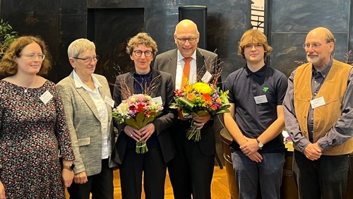 (Bild: v.l. Stellvertretende Superintendentin Juliane Göwecke, Dr. Annette Fugmann-Heesing (Präsidium), Generalsuperintendentin Dr. Julia Helmke, Superintendent Michael Raddatz, Tobias Kapp (Präsidium) und Präses Manuel Starck.